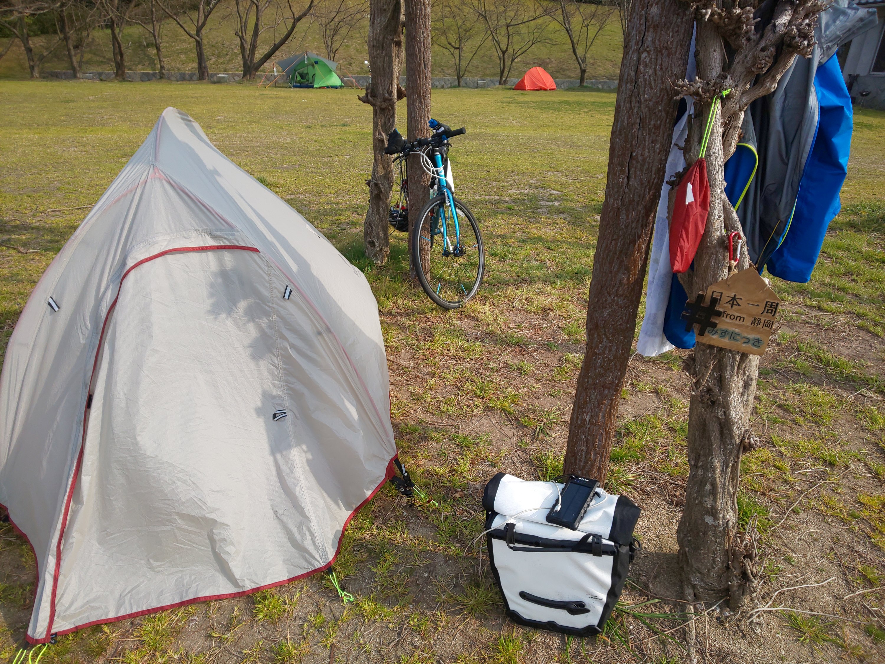 キャンプ場にいってみると、テントがちらほらとあり安心した。早く着いたので水道で髪の毛を洗ったり、タオルを干したり、テントを丁寧に設営した。